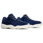 Translating the 2017 Derek Jeter high-top into a low-top style . this model sports a Yankee-themed Binary Blue and Sail colorway. The sneaker comes dressed in an entirely suede upper with embroidery of Jeter’s jersey number 2 on the back heel . with a clean white coating and translucent outsole rounding out the design. The original model was released in an edition of five and given to five raffle winners for free. Now . the Jordan 11 Retro Low RE2PECT is available to the public.