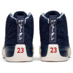 Michael Jordan famously included a ‘Love of the Game’ clause in his contract to ensure that he could play basketball in the offseason. The stipulation saw him spend summers traveling the globe to promote the game in foreign countries through basketball clinics. Jordan Brand saluted these efforts with the International Flight Collection . a trio of shoes representing notable camps he took part in. This Air Jordan 12 colorway . honoring a 1996 trip to Tokyo . features a kimono-style print on the suede upper and a koi fish scale pattern on the mudguard. The characters on the heel translate to ‘Air Jordan.’