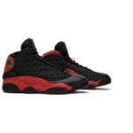 The Air Jordan 13 received a retro update in 2017 outfitted in its original color scheme. The Air Jordan 13 Retro ‘Bred’ 2017 features a black leather upper with matching 3M reflective ballistic mesh overlays on the sidewall. The sneaker also boasts a padded tongue for added comfort . True Red suede overlays . and the iconic green hologram on the ankle.