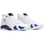 The Air Jordan 14 Retro ‘Hyper Royal’ showcases classic color blocking that recalls the OG white and Varsity Red colorway from 1998. A combination of smooth and stitched tumbled leather is utilized on the upper . accented with a signature Jumpman badge on the lateral collar. Contrasting royal blue hits stand out on the heel and midsole . which features a carbon fiber shank plate for added stability and arch support.