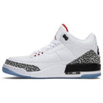 In celebration of Michael Jordan’s iconic launch from the free throw line thirty years ago during the 1988 Slam Dunk Contest . Jordan Brand released the Air Jordan 3 Retro NRG ‘Free Throw Line.’ The sneaker comes dressed in white with Cement Grey accents on the toe box and heel and Fire Red detailing on the eyelets and on the tongue. The model also boasts a translucent sole with a red stripe . exactly where MJ took off from the line. Other details include “3:51” lettering on the back pull tab to remember the time Jordan took flight . and “147” on the tongue as a nod to his final score.