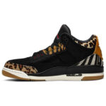 Revealed in December 2019 . the Nike Air Jordan 3 Retro SP from the ‘Animal’ pack is a wild spin on the hoops icon. The sneaker presents an upper covered in black pony hair flaunting leopard-print panels . zebra stripe detailing and ‘Instinct’ under the tongue. A color-pop Jumpman to the tongue and bright heel tab play up the bold aesthetic. Set below the Air-imbued midsole . a gum rubber outsole wraps up the design.