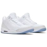 Tinker Hatfield’s Air Jordan 3 appears in its simplest form . featuring an all-white leather makeup that’s blocked with a tonal elephant print on the toe and heel. By foregoing silver accents on the eyelets and the actual Pure Money stitching on the tongue . and including a translucent blue outsole as an understated nuance . the Triple-White features subtle differences from 2007’s ‘Pure Money’ release.