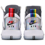 The Air Jordan 34 PF ‘Unite’ shows off an iridescent finish on the eyestay and heel panel . featuring mismatched Nike Air branding between the left and right shoe. The rest of the upper is built with white synthetic leather and translucent textile . supported by a midsole that combines an Eclipse Plate with visible Zoom Air for extra-responsive cushioning. A herringbone-tread rubber outsole delivers superior traction underfoot.