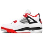 The 2020 edition of the Air Jordan 4 Retro OG ‘Fire Red’ brings back the classic colorway first released in 1989 . complete with the iconic Nike Air logo emblazoned on the heel. The rest of the build is recreated faithfully . highlighted by a white leather upper with Fire Red detailing on the molded eyelets and outsole. Other original details include a visible Air sole unit and tongue patch with a Jumpman logo and Flight script graphic.