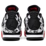 The Air Jordan 4 Retro ‘Tattoo’ takes the iconic silhouette back to its 1989 origins as a performance hoops shoe. The mid-top’s leather upper is entirely covered in a black-and-white basketball print . accented by contrasting pops of Fire Red on the molded eyelets and outsole. The Chicago Bulls-inspired color palette is finished with basic black on the structural wings . quarter-panel netting and Jumpman-embossed heel.