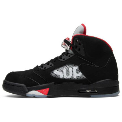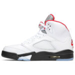 The 2020 edition of the Air Jordan 5 Retro ‘Fire Red’ brings back the OG colorway of the classic silhouette on the occasion of its 30th anniversary. The build is faithful to the original . featuring a white leather upper with a silver reflective tongue and Nike Air branding on the heel. The black midsole . embellished with red shark tooth detailing inspired by a WWII P-51 Mustang fighter plane . is reinforced by an icy translucent outsole.
