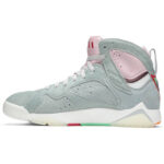 The Air Jordan 7 Retro SE ‘Hare 2.0’ pays homage to Bugs Bunny . Michael Jordan’s costar in a series of classic Jordan TV ads from the early ’90s. The design replicates the look of the iconic Looney Tunes character . featuring a grey pony hair upper with contrasting Pink Foam on the Huarache-like collar and interior bootie. The style code for the original ‘Hare’ Jordan 7 is stamped on the lateral heel . while that shoe’s multi-color accents appear on the semi-translucent rubber outsole.