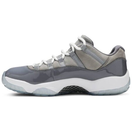 The Air Jordan 11 Retro Low ‘Concord-Bred’ combines two iconic OG colorways of the original mid-top silhouette. The upper replicates the look of the ‘Concord’ Air Jordan 11 . featuring a white leather upper with a signature patent leather overlay in contrasting black and unexpected red branding elements at the tongue and heel. A white foam midsole gives way to a semi-translucent red rubber outsole . borrowed from the ‘Bred’ Air Jordan 11.